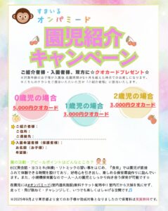 令和8年度園児の募集に関する、園児紹介キャンペーンを行っております。