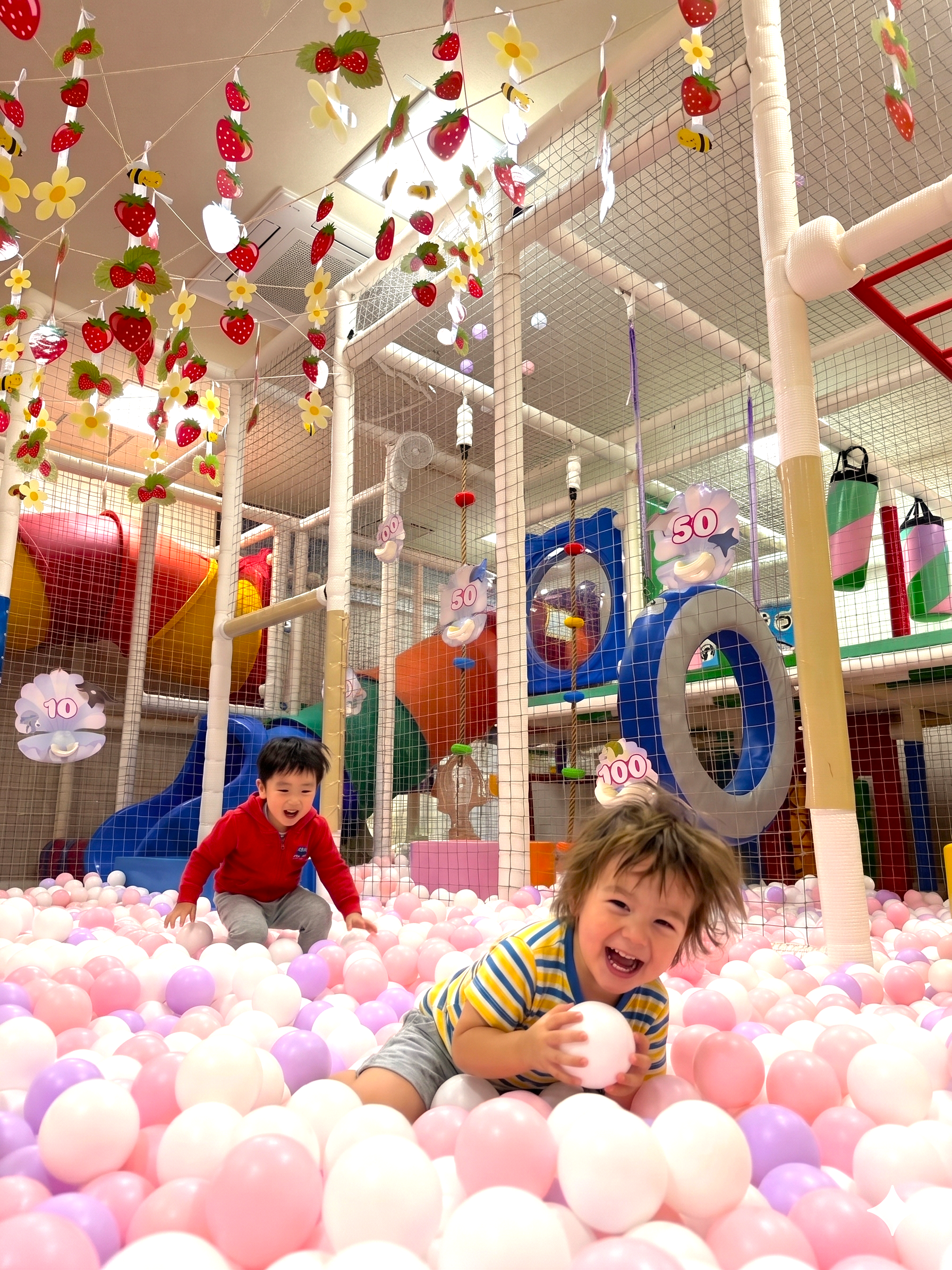 「一緒に投げよう!」「そっちに転がった!」——ボールプールは自然と会話が生まれやすい遊具です。小さな子でも参加しやすく、初対面の子とも仲良くなりやすい場所です。