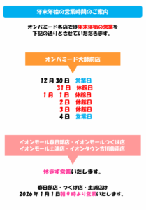 年末年始営業時間のご案内